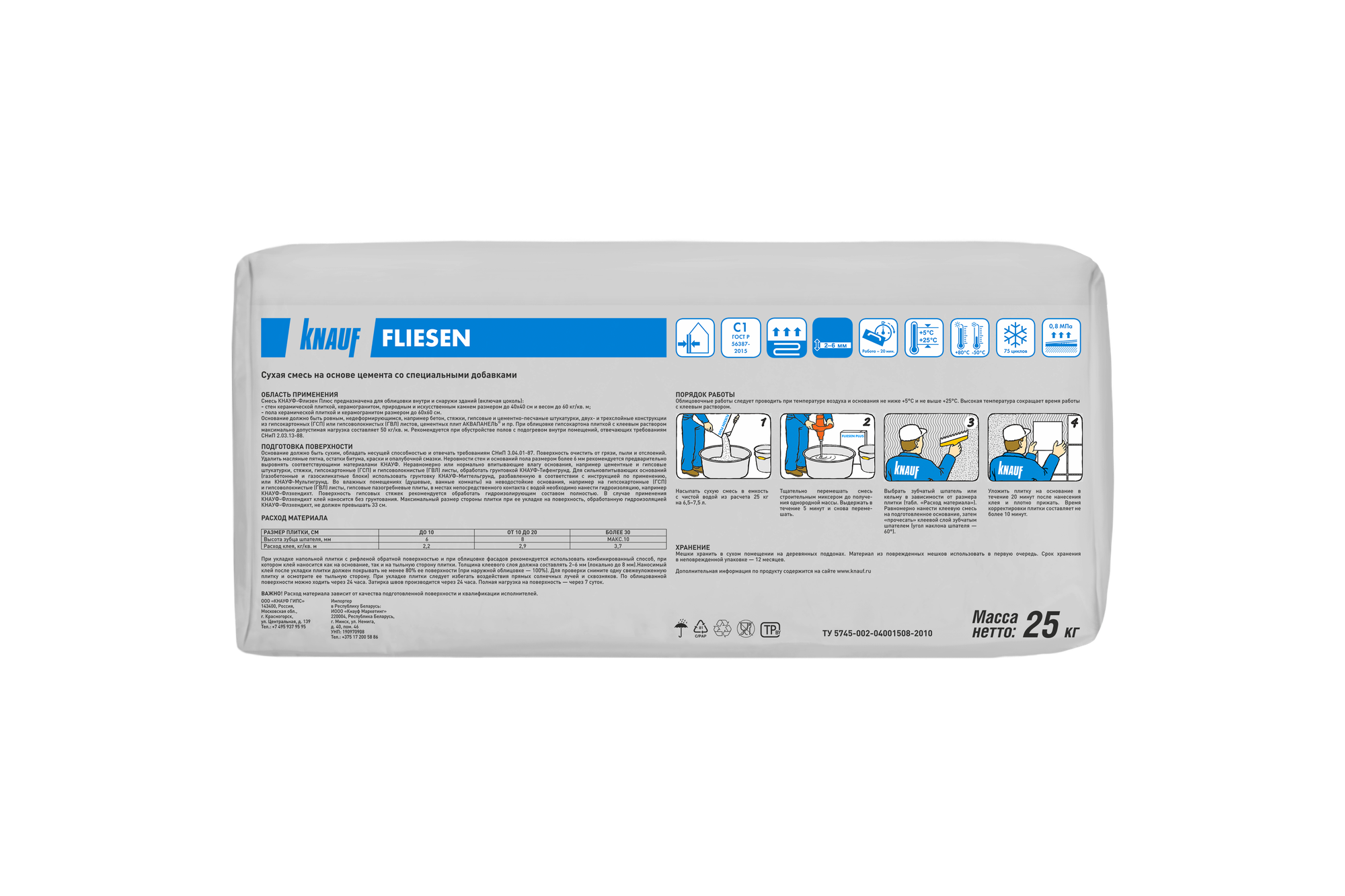КНАУФ Флизен Плюс клей плиточный усиленный (25кг) / KNAUF Fliesen Plus клей для плитки и керамогранита усиленный (25кг)