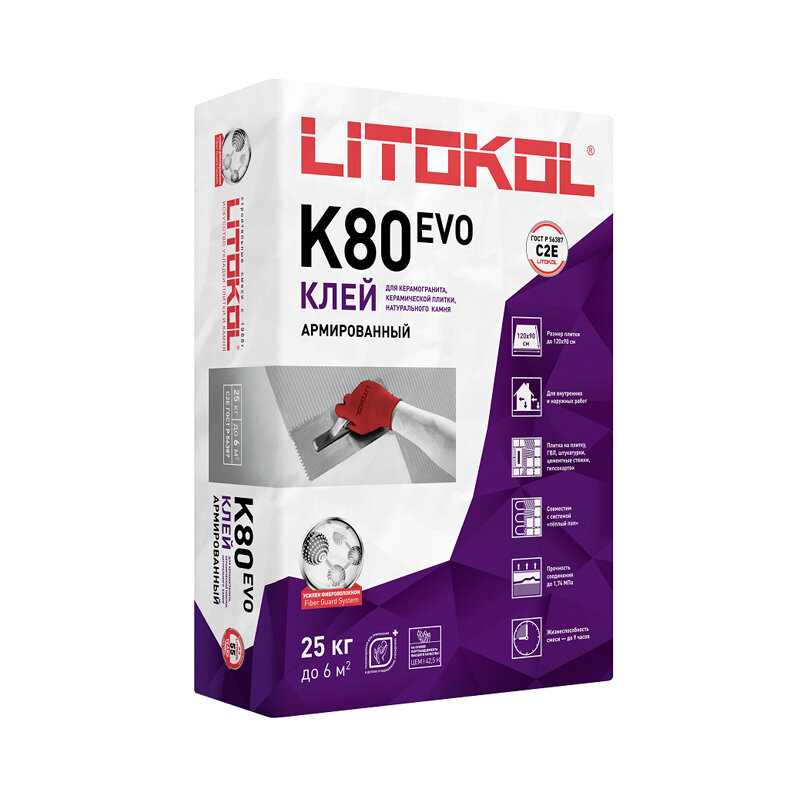 Литокол К80 Литофлекс клей для керамогранита (25кг) серый / LITOKOL K80 Litoflex клей для керамического гранита (25кг) серый