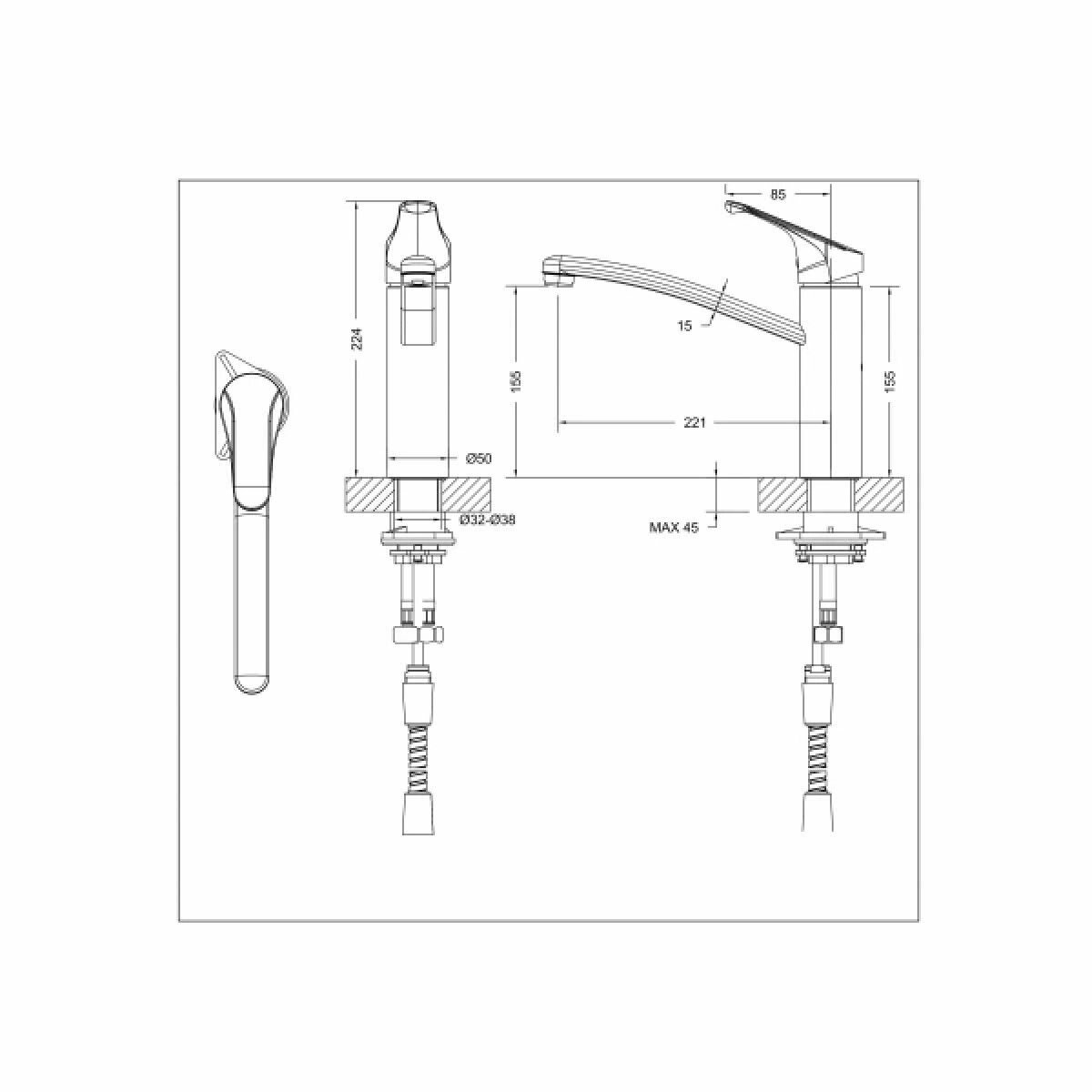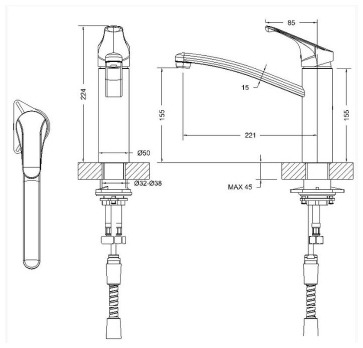 | Длина излива | 221 мм |