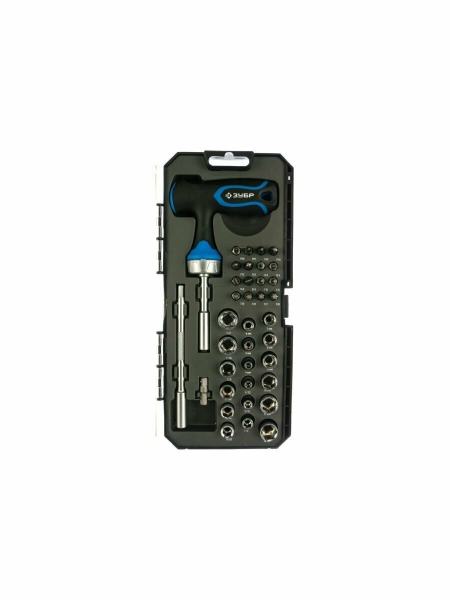 Набор Зубр Профессионал 25351-H38 реверсив с Т-образной рукоят.насадки.рукоят с отсеком для бит. 25