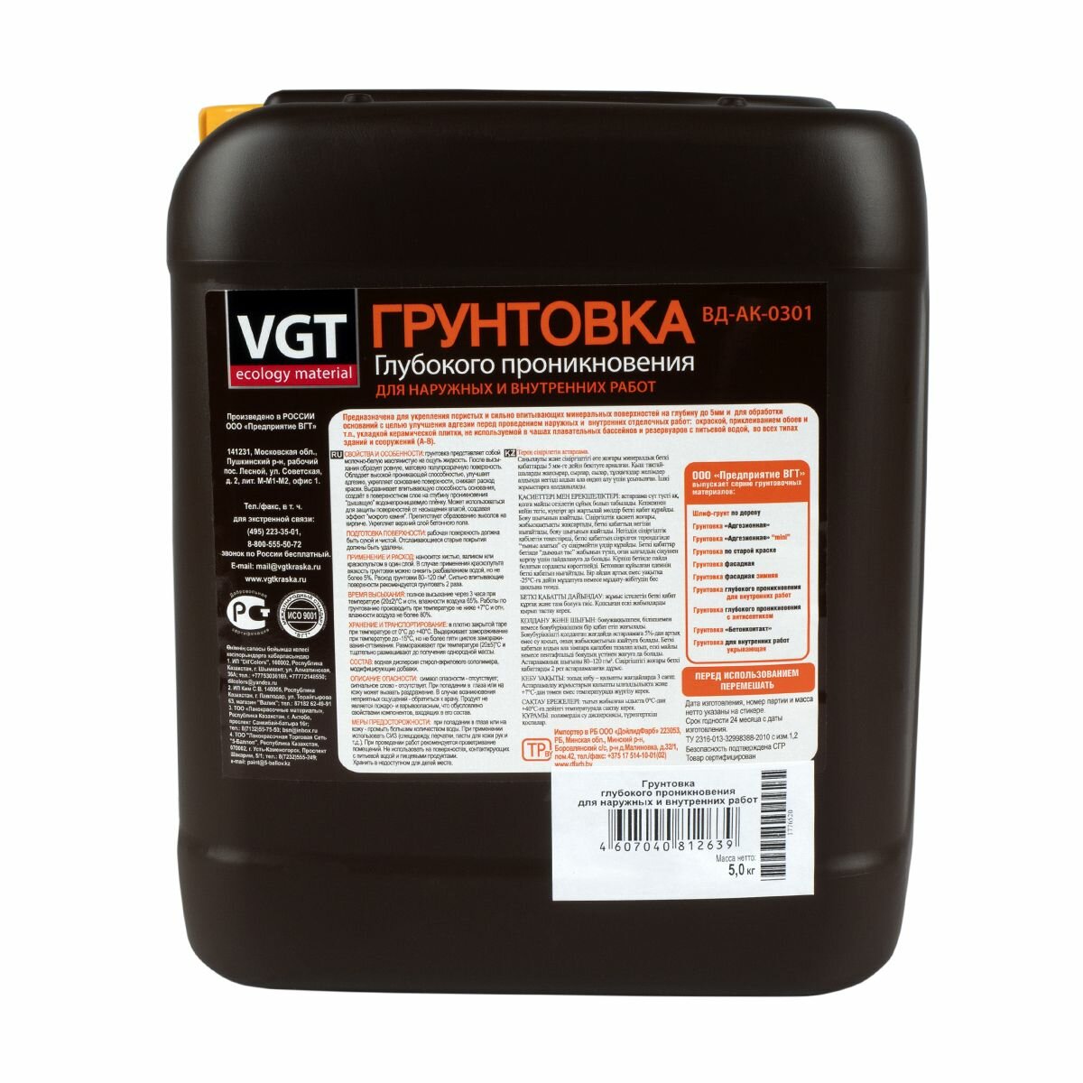 Грунтовка глубокого проникновения для наружных и внутренних работ ВД-АК-0301 VGT (5кг)