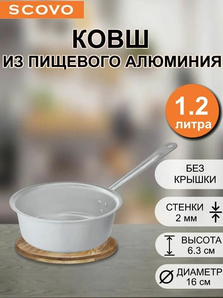 Ковш алюминиевая без покр 1,2л SCOVO МТ-018