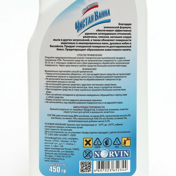 Ниже Вы можете прочитать отзывы на Чистящий спрей Свежинка "Чистая ванна", 450 гр, ознакомится с подробными характеристиками, посмотреть интересные обзоры и фотографии на Чистящий спрей Свежинка "Чистая ванна", 450 гр.