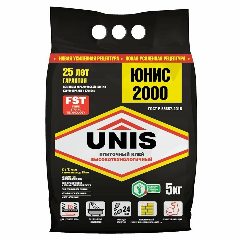 Клей для плитки Unis 2000 керамогранит 5 кг юнис (1шт) (75695)