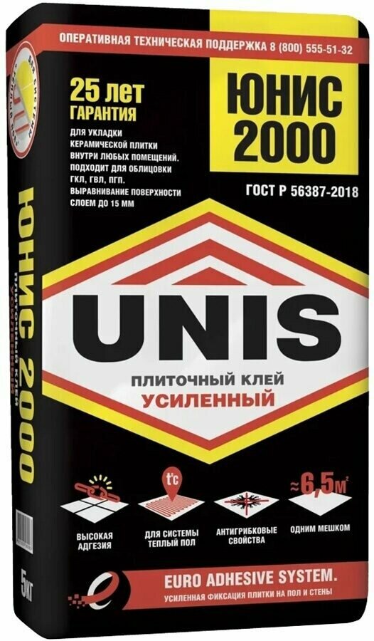 Юнис 2000 клей плиточный (5кг) / UNIS 2000 клей для плитки и камня (класс С1) (5кг)