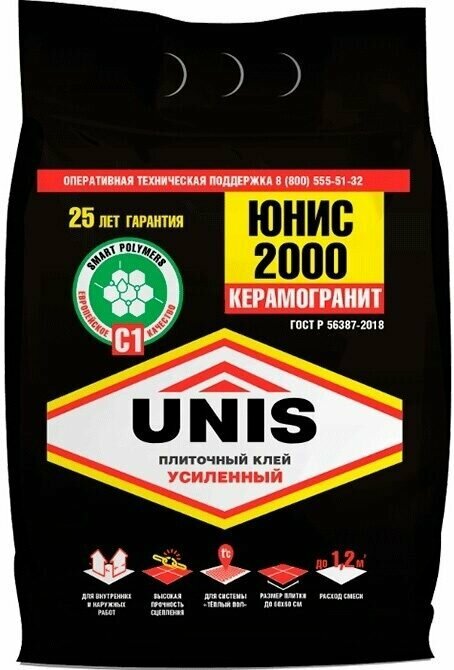 Юнис 2000 клей плиточный (25кг) / UNIS 2000 клей для плитки и камня (класс С1) (25кг)