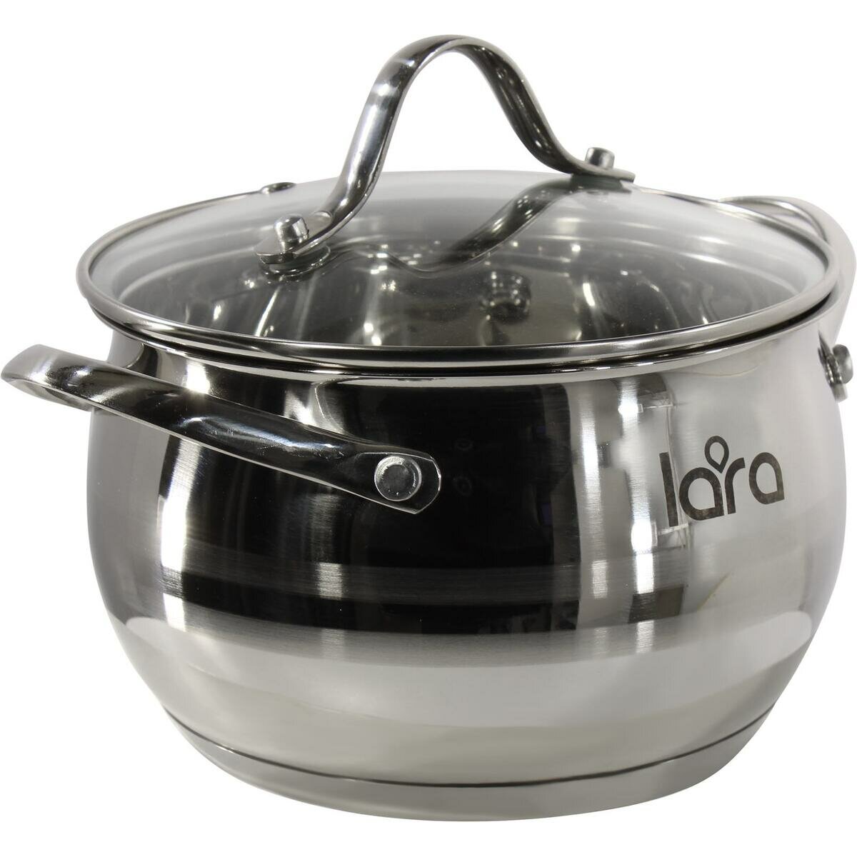 LR02-31 Кастрюля LARA (нерж) серия APPLE 16x10см, 2.1л,стал. ручки,капсулир индукц дно,крышка стекло