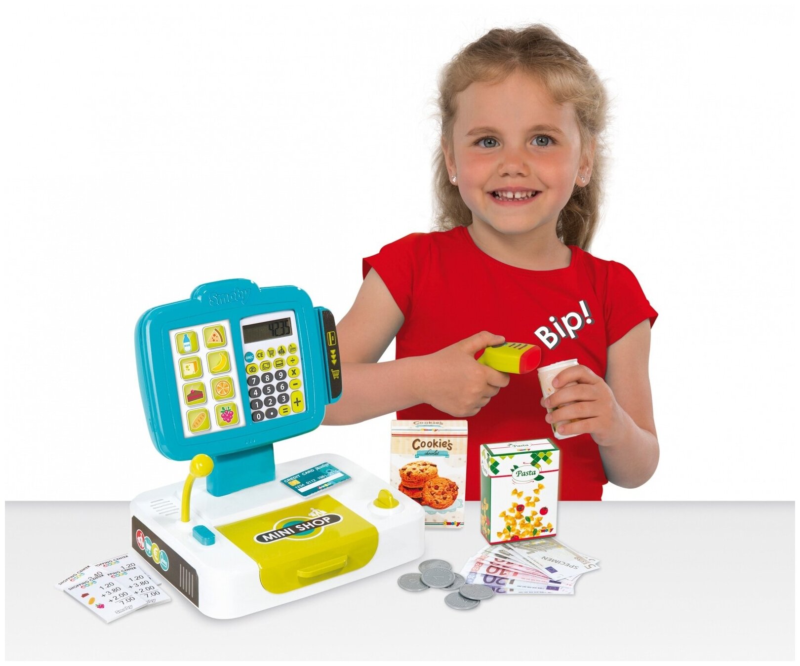 Купить Электронная касса с весами, Smoby (игровой набор, 27 аксессуаров, синяя, 350104)