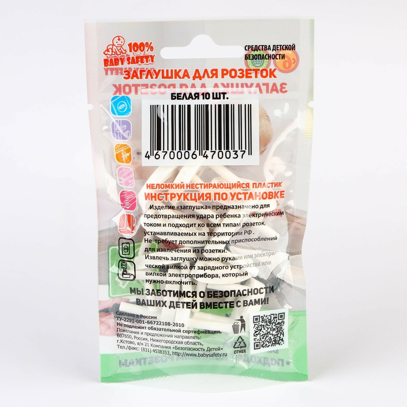 100% Baby Safety Заглушки для розеток от детей 10шт. Белые 4670006470037