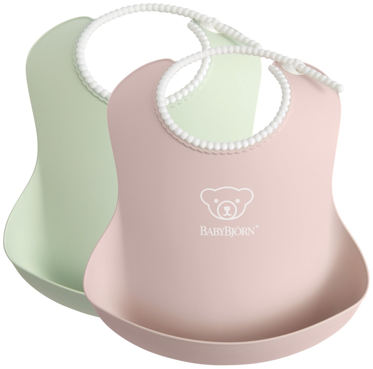 Купить Нагрудник Baby Bjorn мягкий с карманом 2шт нежно-зеленый / нежно-розовый 0463.43