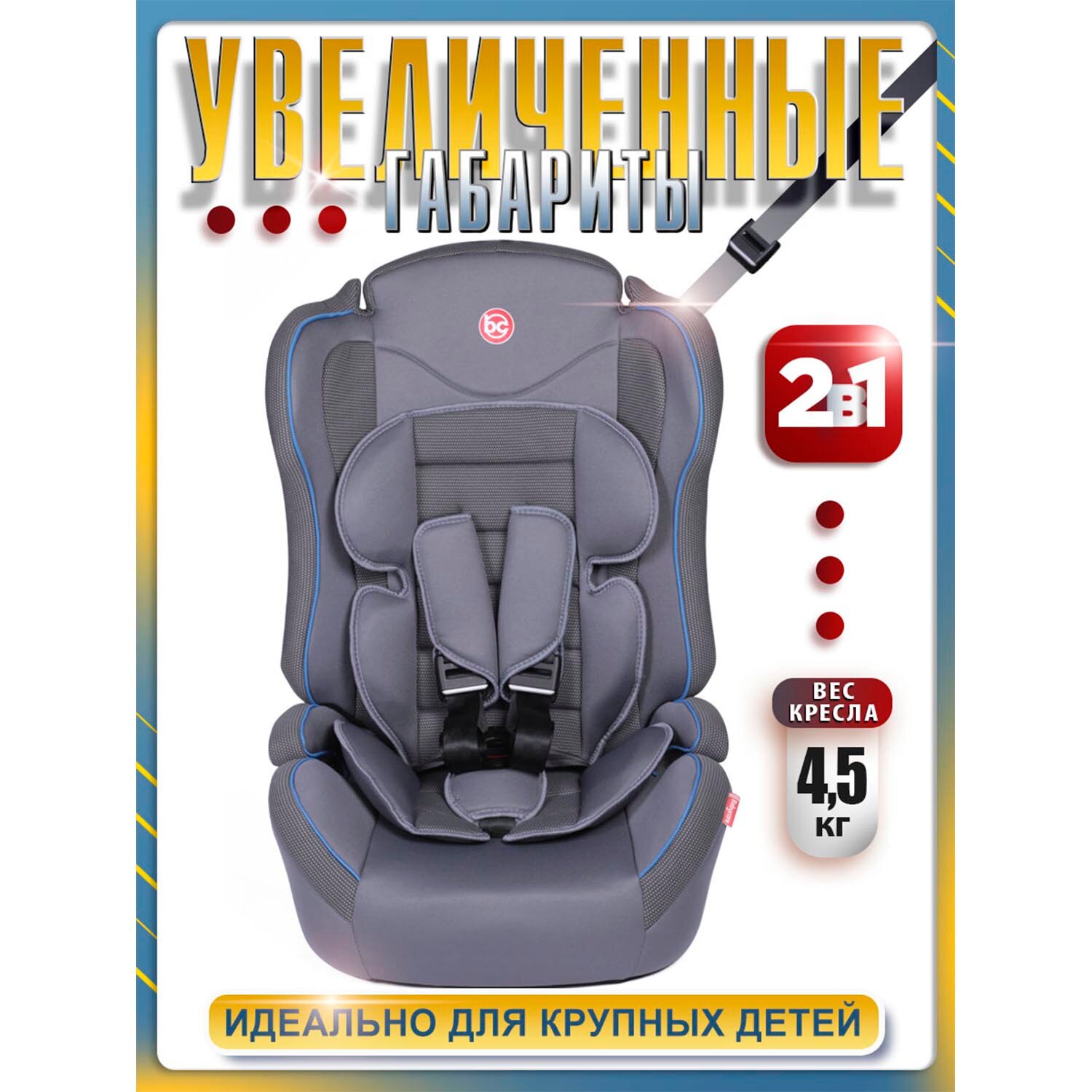 Купить Baby Care Детское автомобильное кресло Upiter Plus гр I/II/III, 9-36кг, (1-12лет) Серый/Синий (Grey/Blue)
