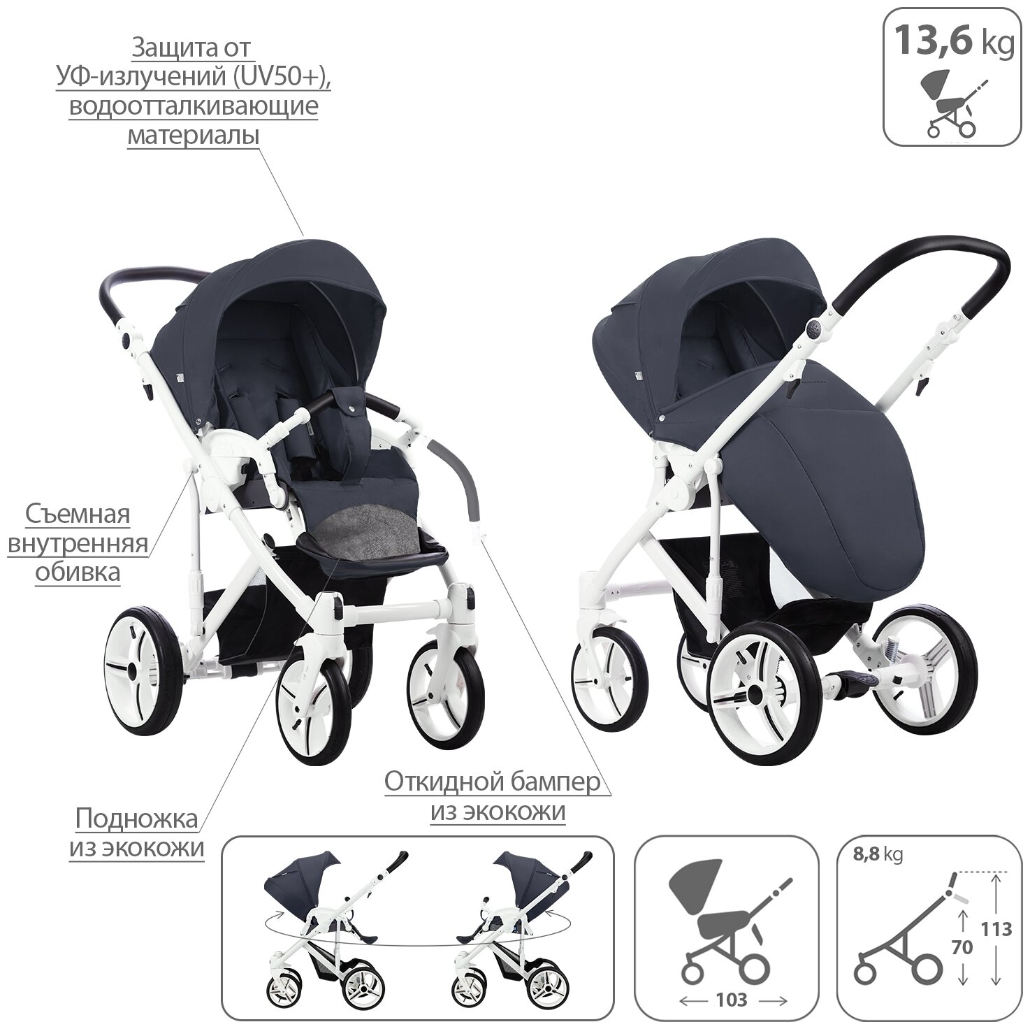 Универсальная коляска Bebetto Magnum 2018 (2 в 1), 202bia, цвет шасси: белый