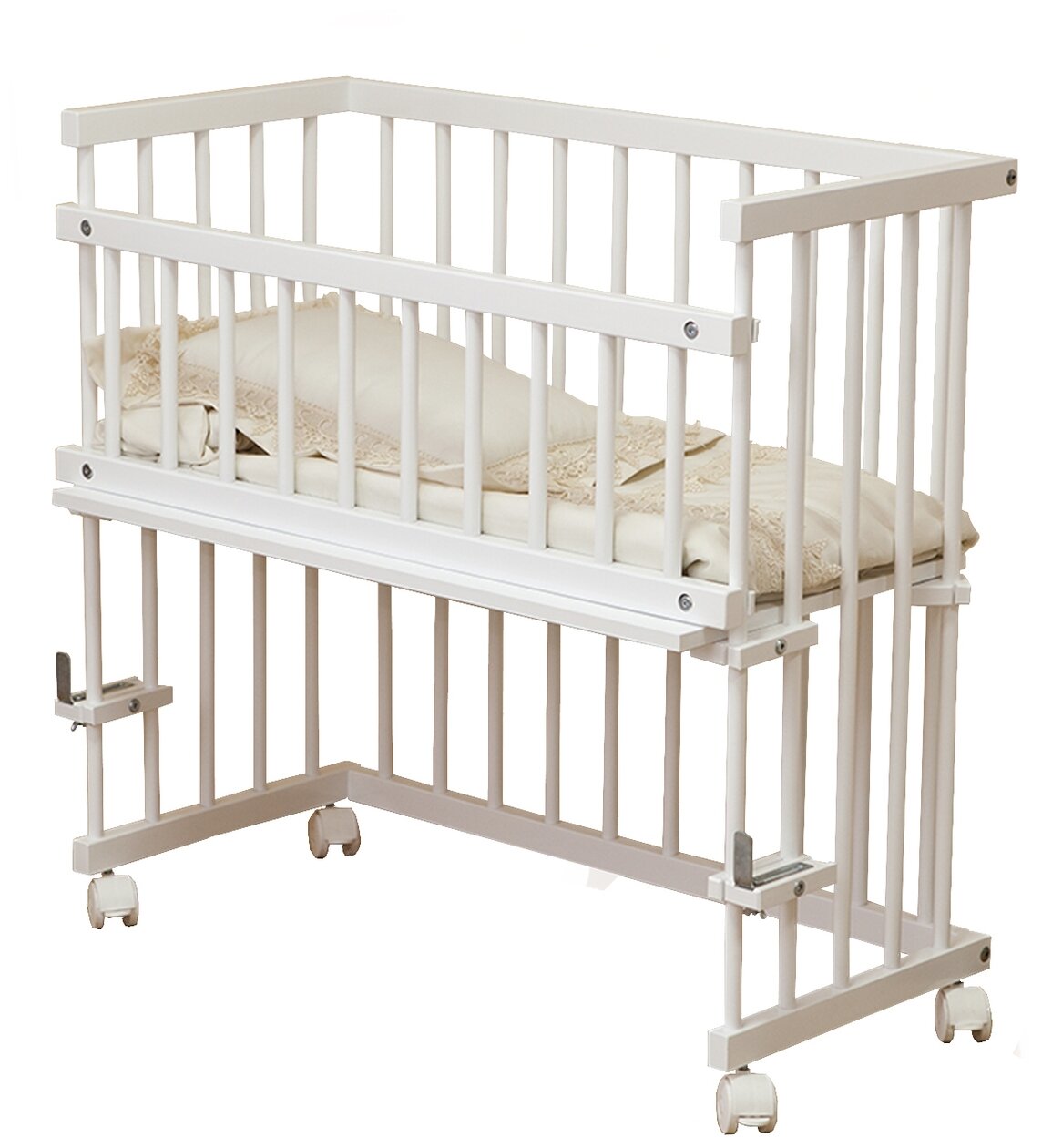 | Плюсы: | Можно настроить на любую высоту, вплотную встаёт к родительской кровати |