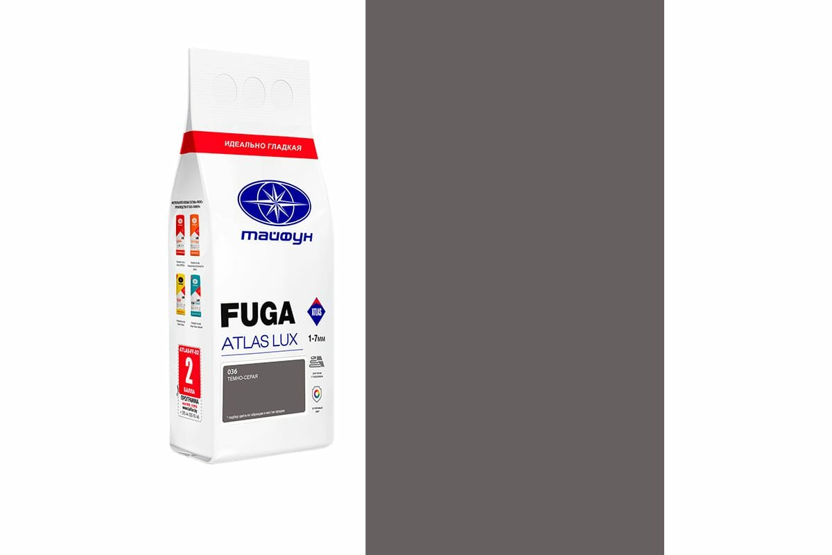 Тайфун Затирка цементная Fuga ATLAS LUX № 036 цвет темно-серый меш. 2 кг. 036-2-lux