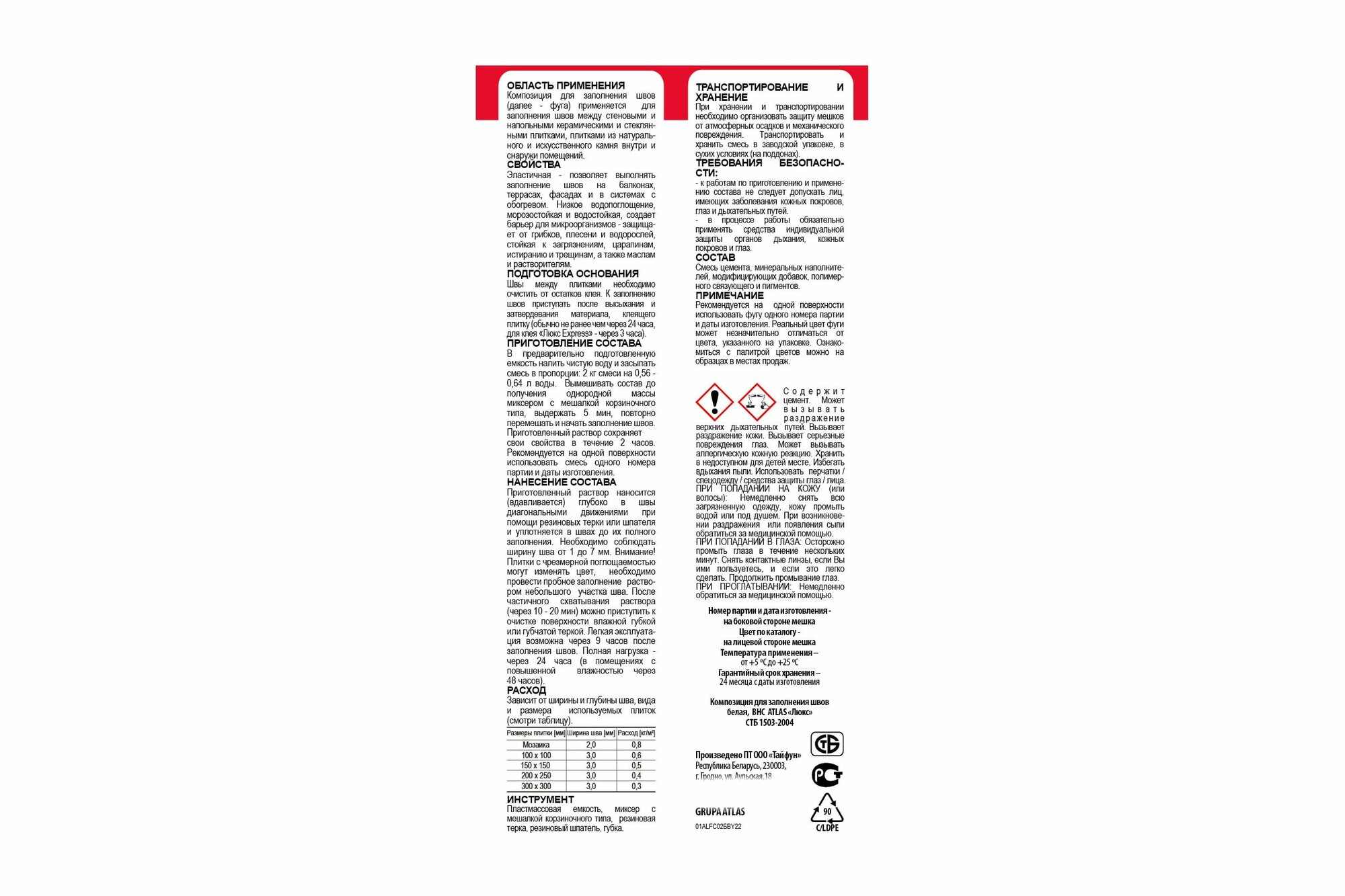| Макс. расход | 2 кг/м² |