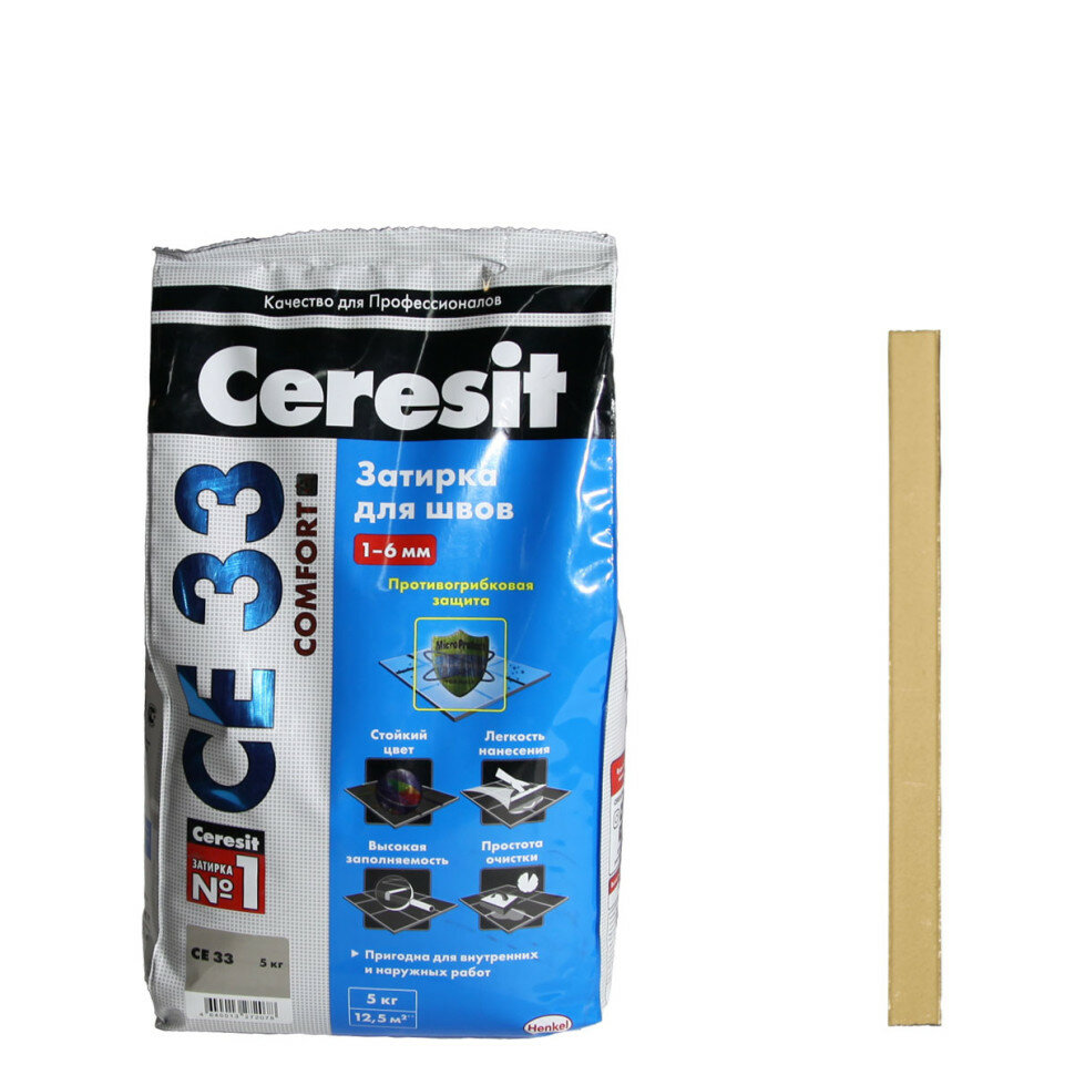 Церезит СЕ 33 затирка противогрибковая №41 натура (2кг) / CERESIT CE-33 Comfort затирка цементная для швов противогрибковая №41 натура (2кг)
