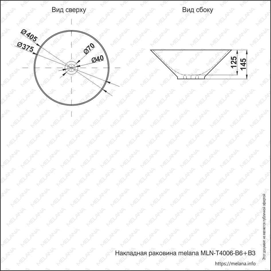 Раковина накладная (40,5х40,5) Melana T4006-B6+B3-806