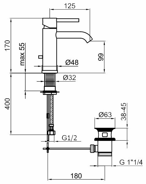 | Длина излива | 125 мм |