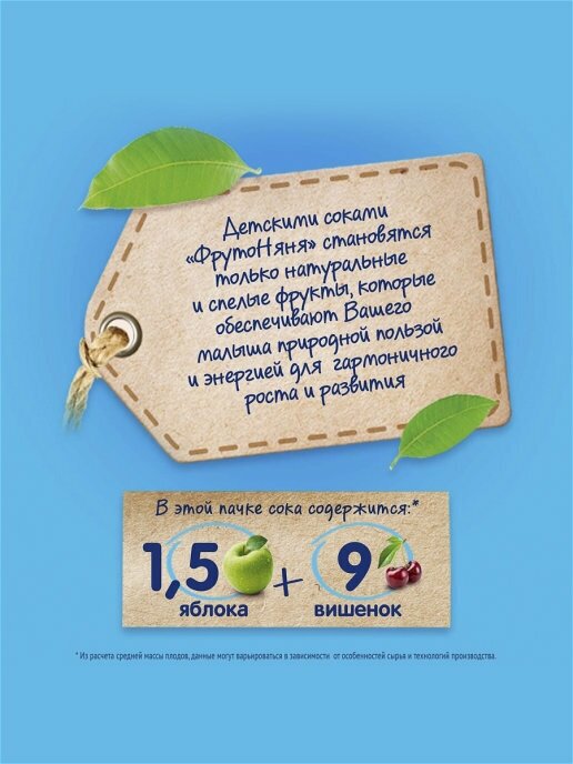 Сок ФрутоНяня из яблок и вишни осветленный, с 5 месяцев, 0.2 л, 6 уп.