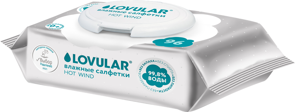Влажные салфетки LOVULAR Hot Wind, пластиковая крышка, 96 шт., 1 уп.