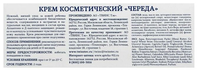 Крем детский "911" Череда под подгузник от опрелостей, 150 мл 2542545 интересное: