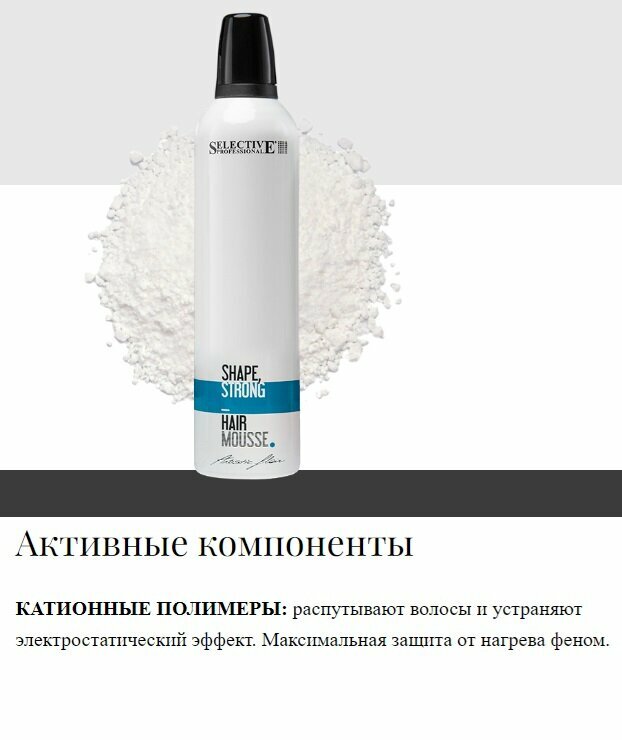 Моделирующий мусс Selective Professional Shape Hair mousse, сильная фиксация, 400 мл