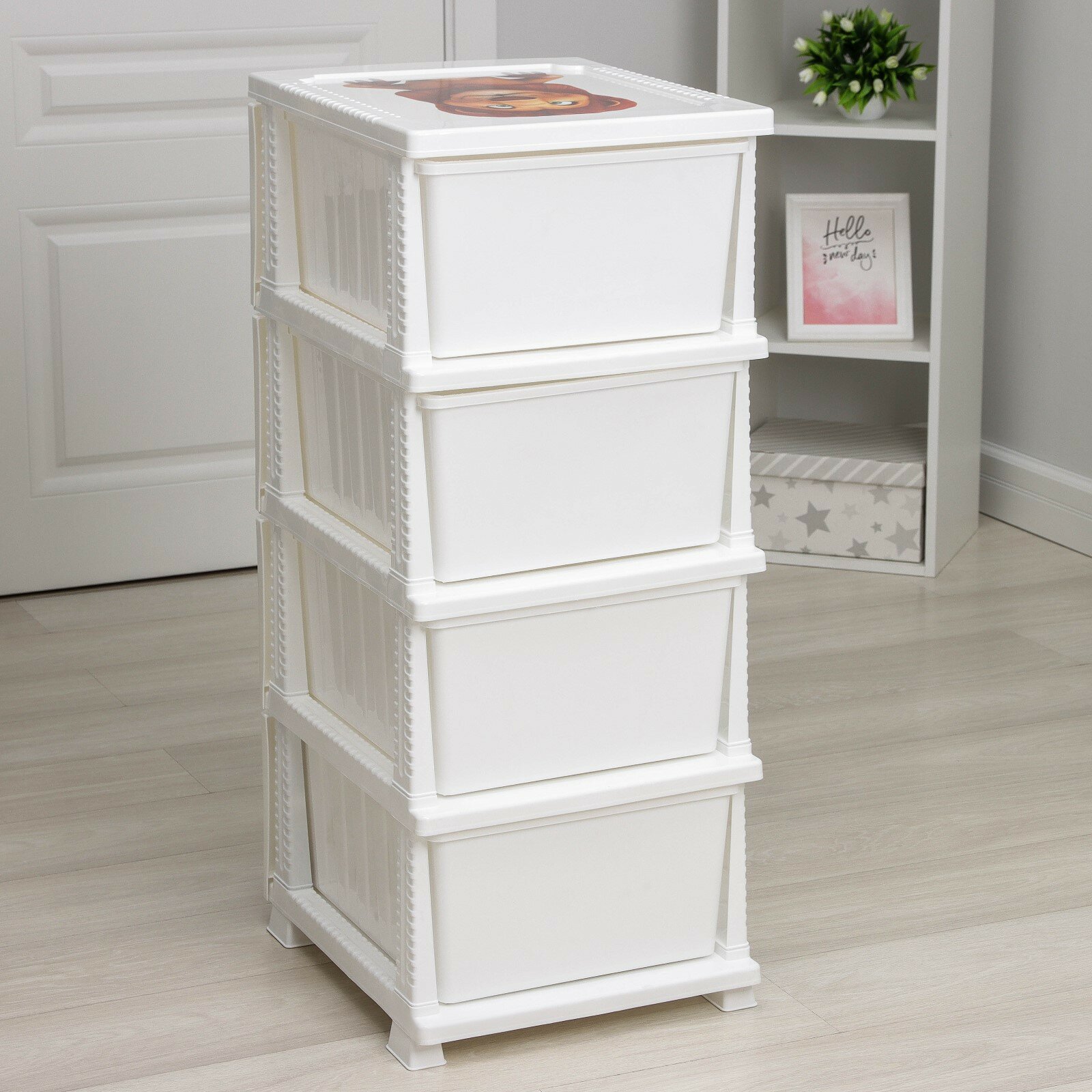 Комод детский 4 ящика, Дракон, 38х47х98 см, белый, Росспласт, РП-451
