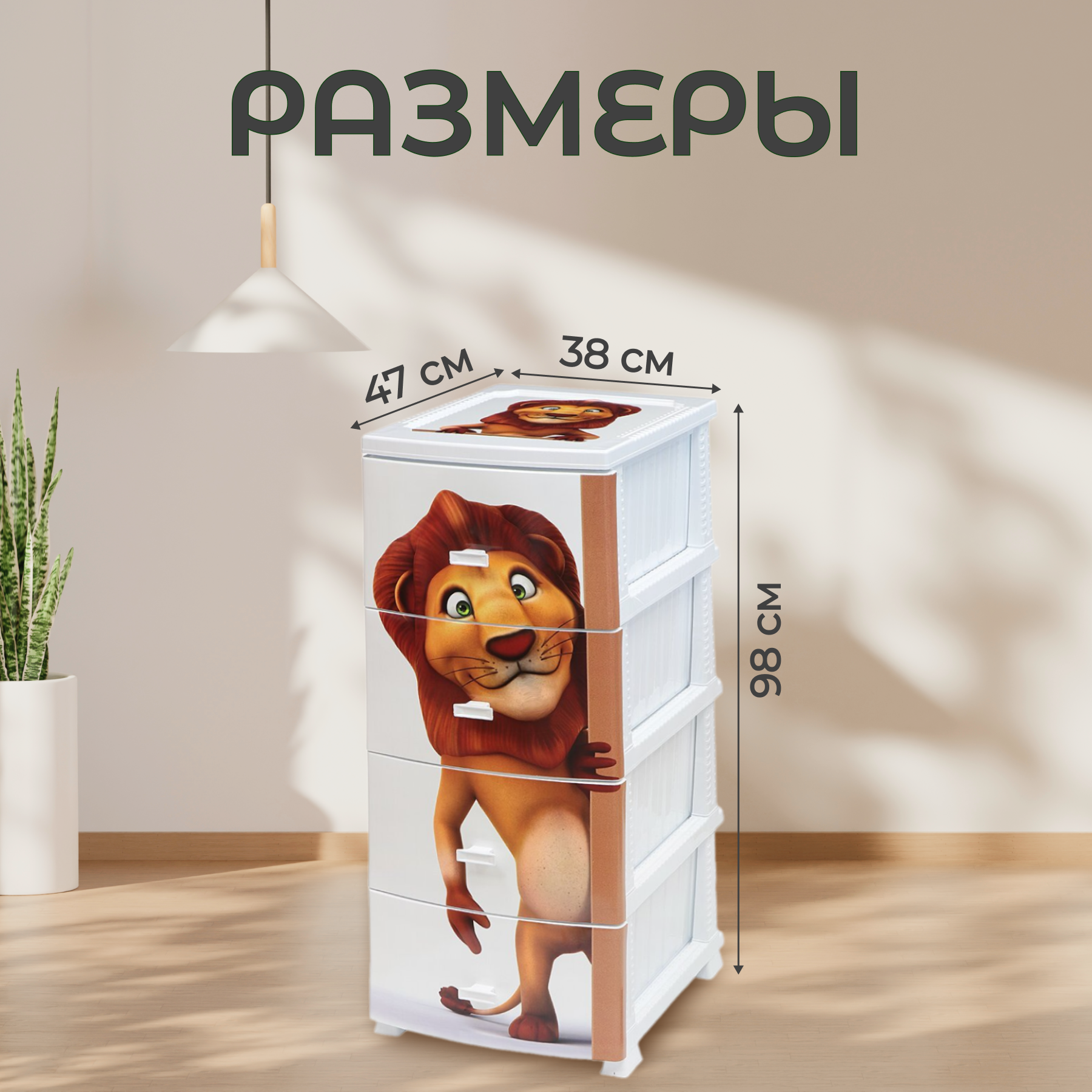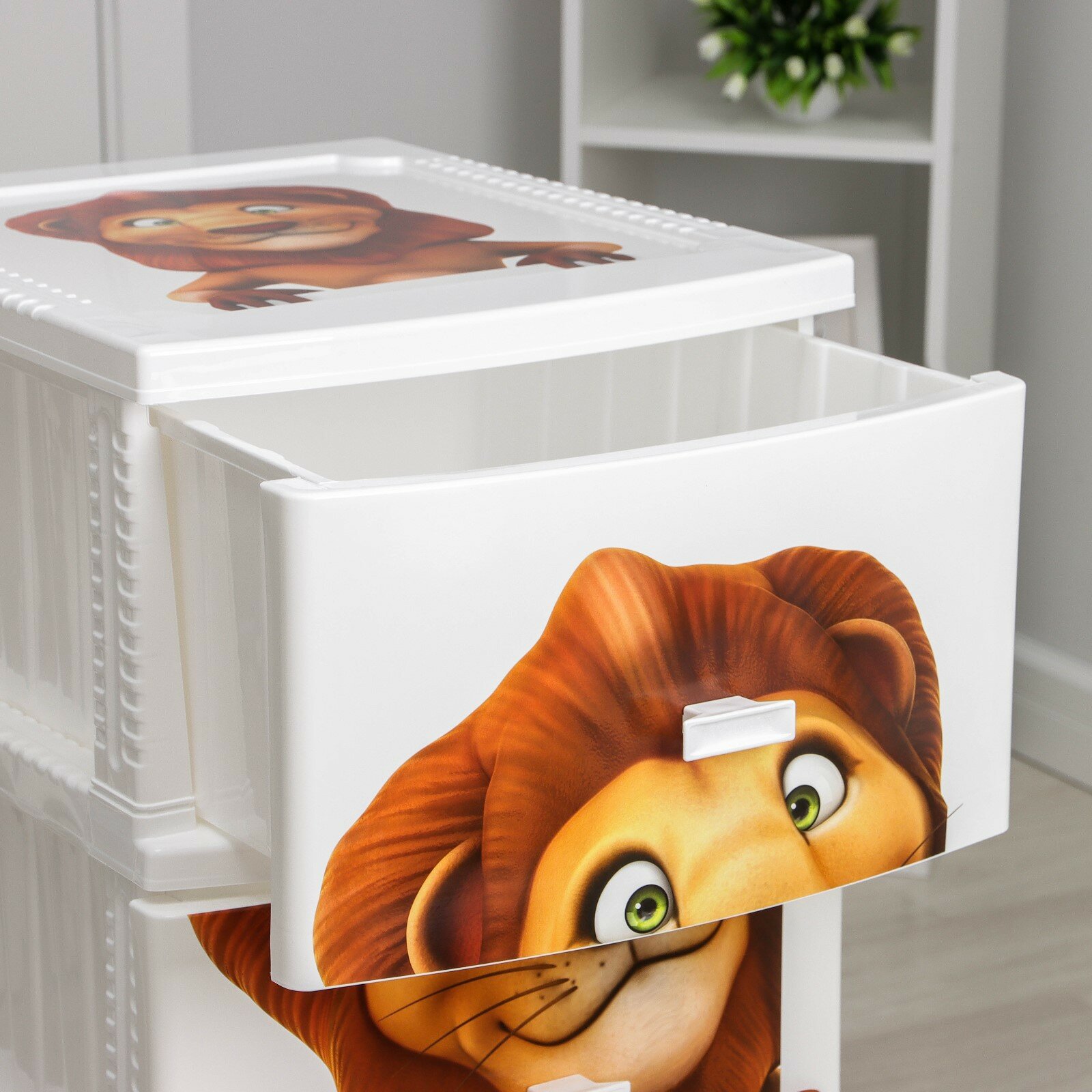 Росспласт Комод детский 4-х секционный «Декор. Лев», цвет белый