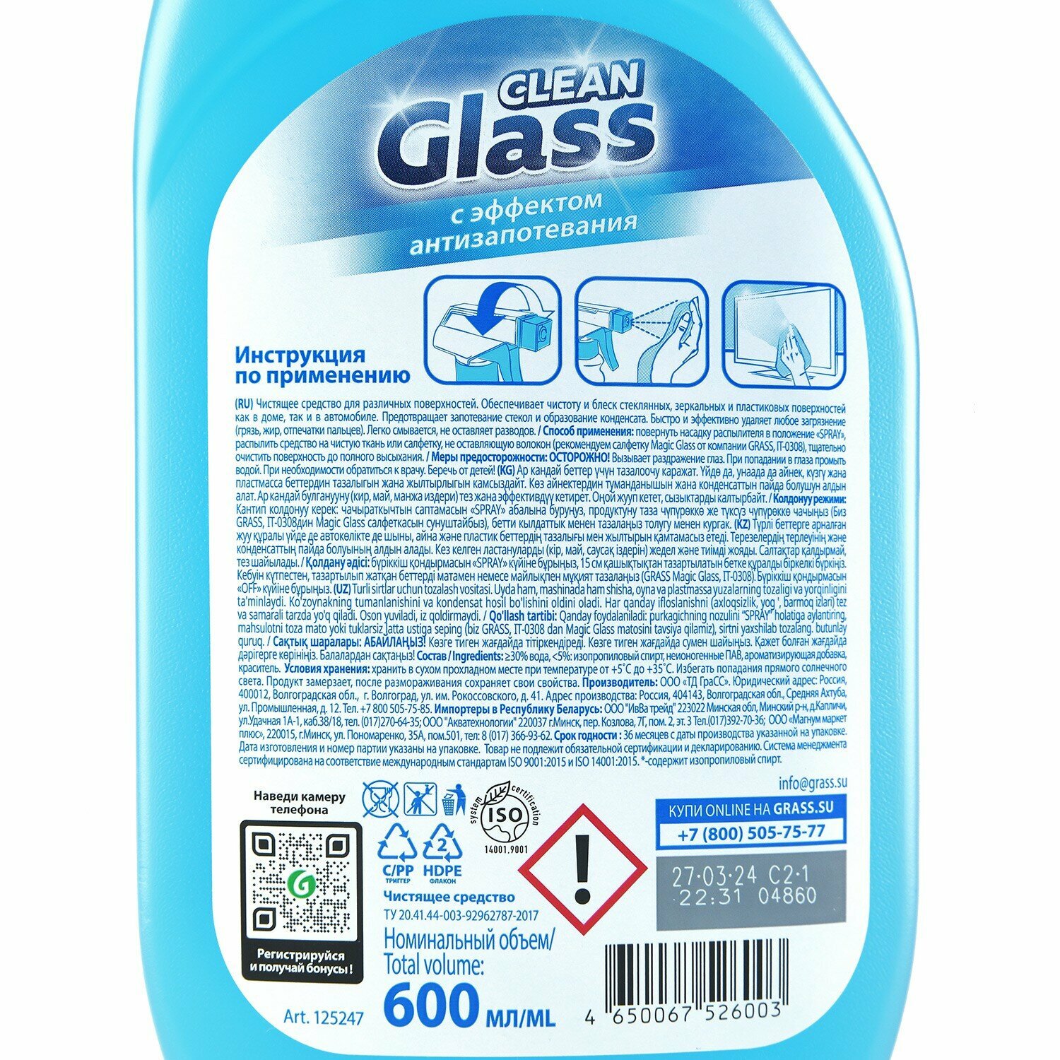 Средство для мытья стекол и зеркал GRASS Clean Glass, 2 штуки по 600 мл