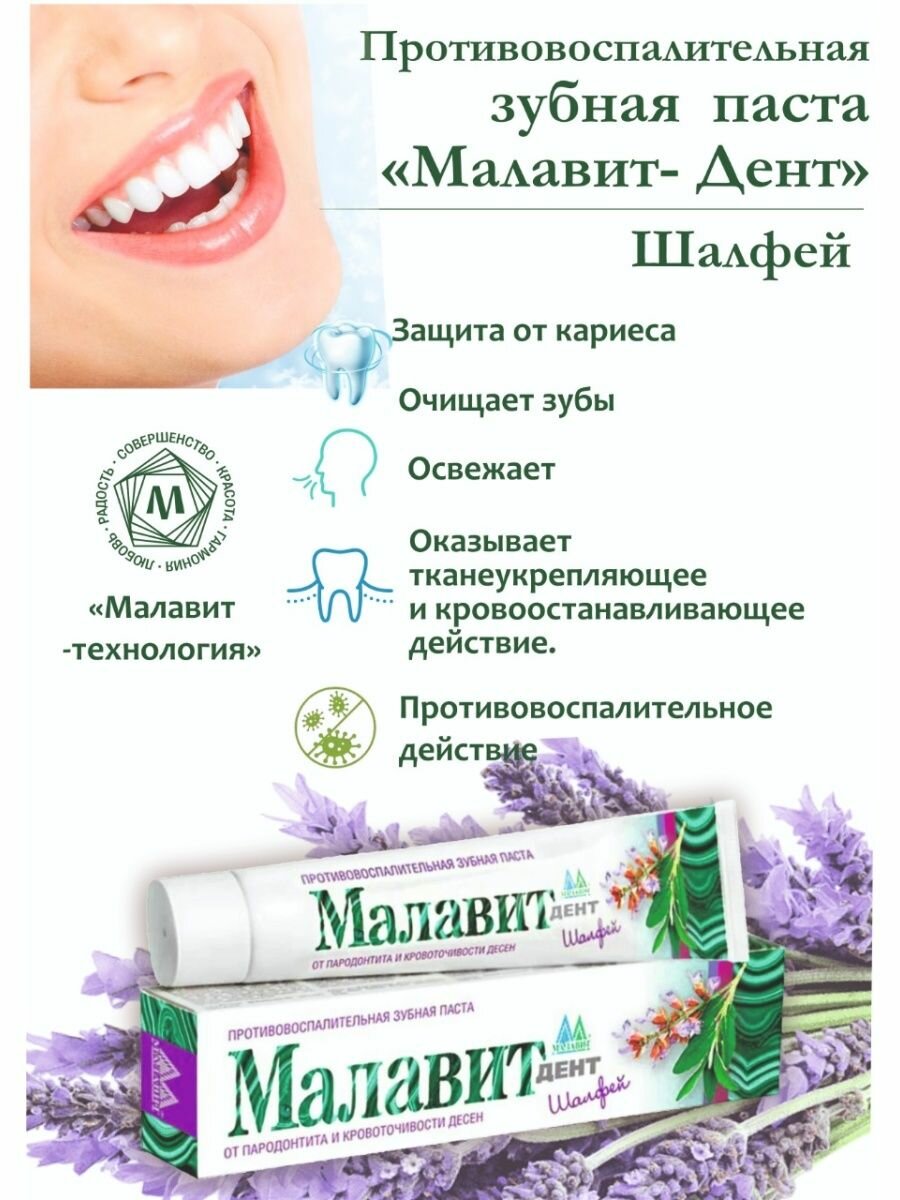 Зубная паста Малавит противовоспалительная, Шалфей, 75 мл