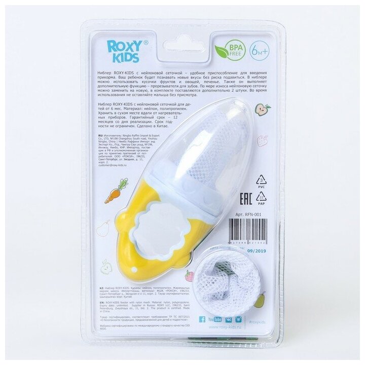 Ниблер для прикорма ROXY-KIDS детский с нейлоновой сеточкой цвет желтый
