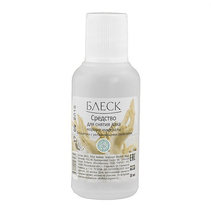 Средство для снятия лака "Блеск" морские минералы, без ацетона, 30 мл