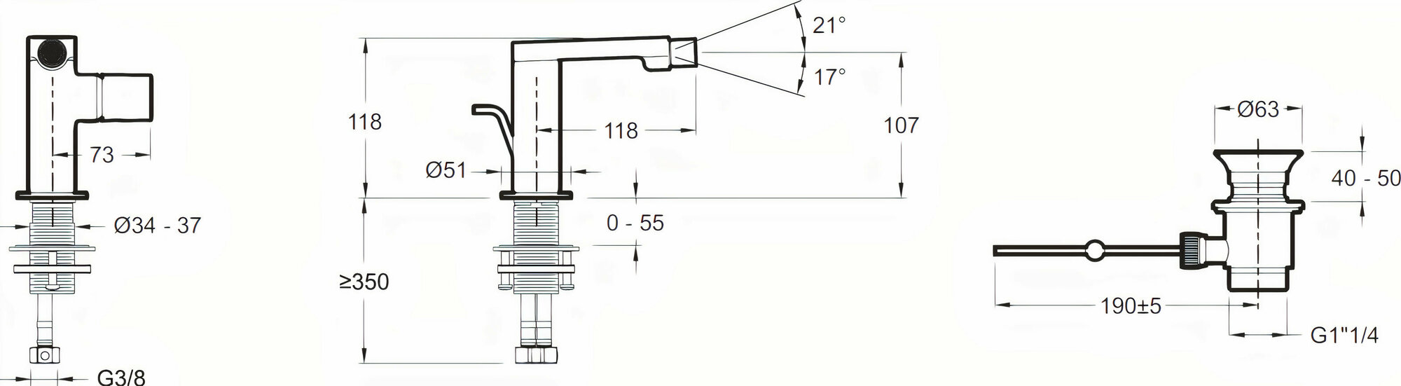 | Длина излива | 118 мм |
