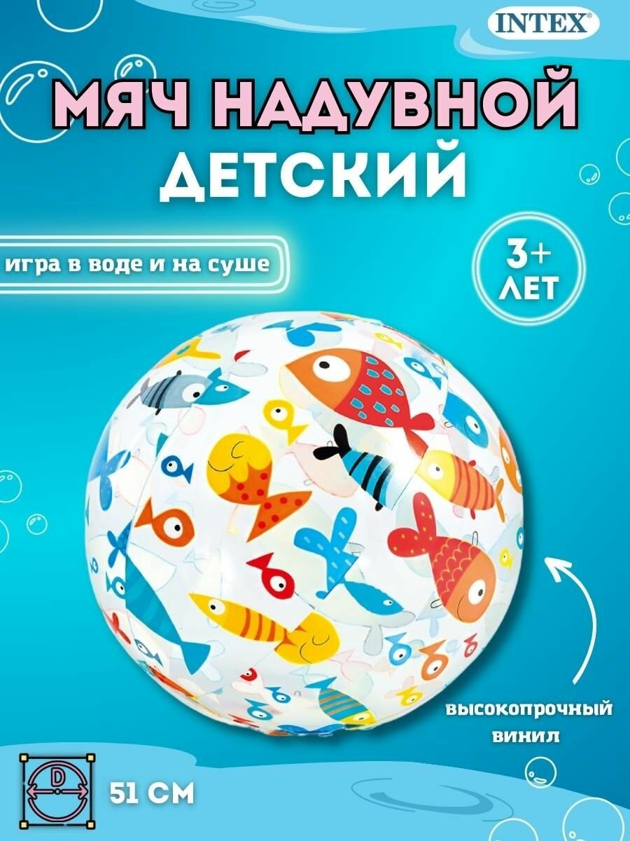 СохранитьНадувной мяч Intex 59040NP Lively Print Ball (51см, 3+) рыбки интересное: