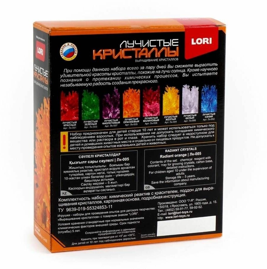 Набор для выращивания кристаллов Lori "Лучистый оранжевый", картонная коробка Lori 222972