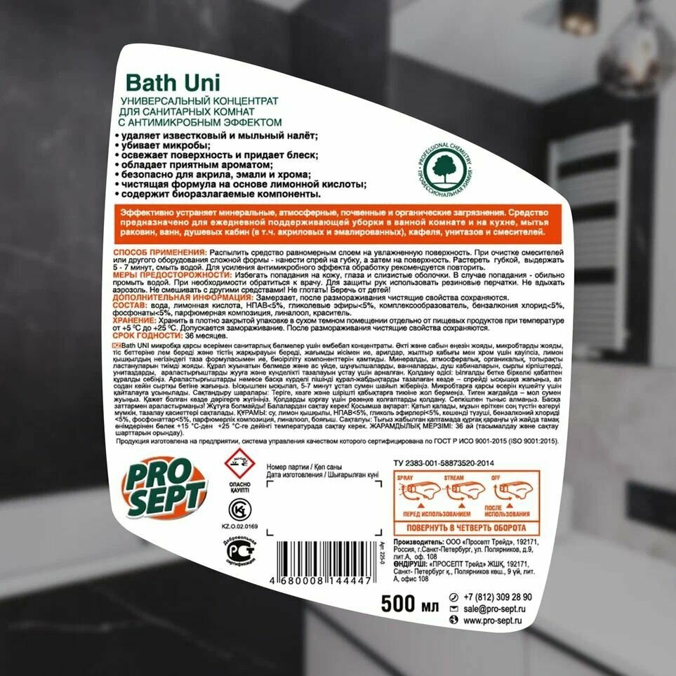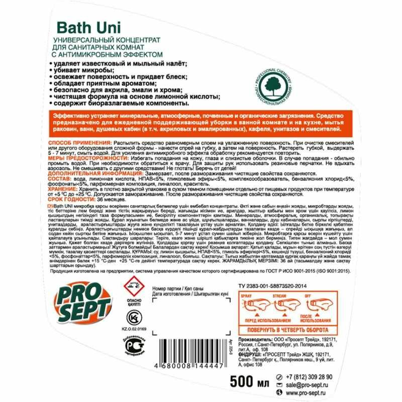 PROSEPT средство с антимикробным эффектом Bath Uni, 0.5 л