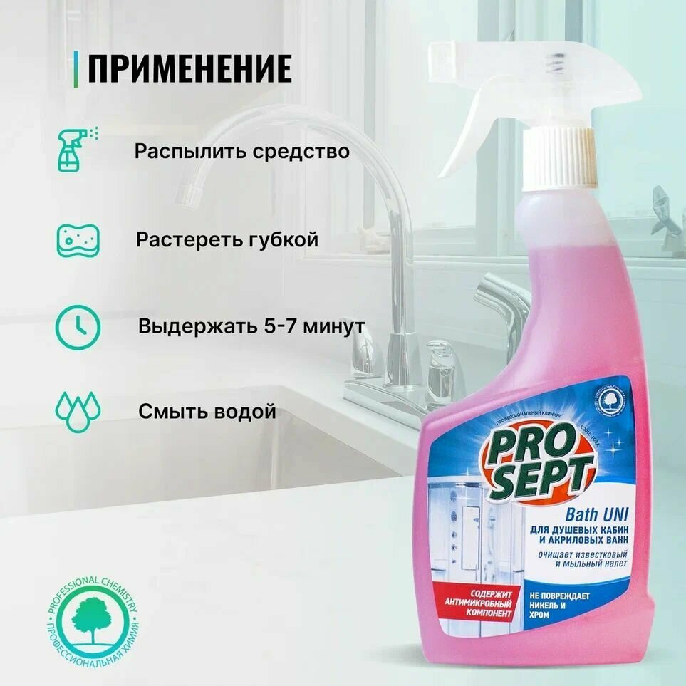 Спрей для чистки сантехники, душевых кабин и акриловых ванн Prosept Bath Uni (5л)
