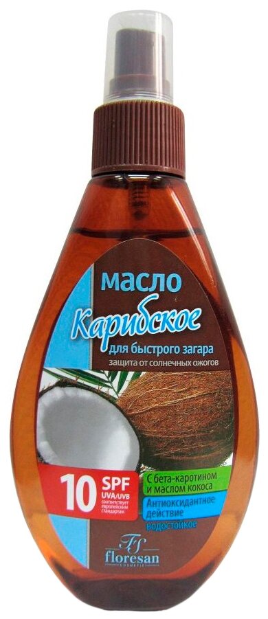 Floresan Масло для быстрого загара "Карибское", водостойкое, SPF 10, 160 мл