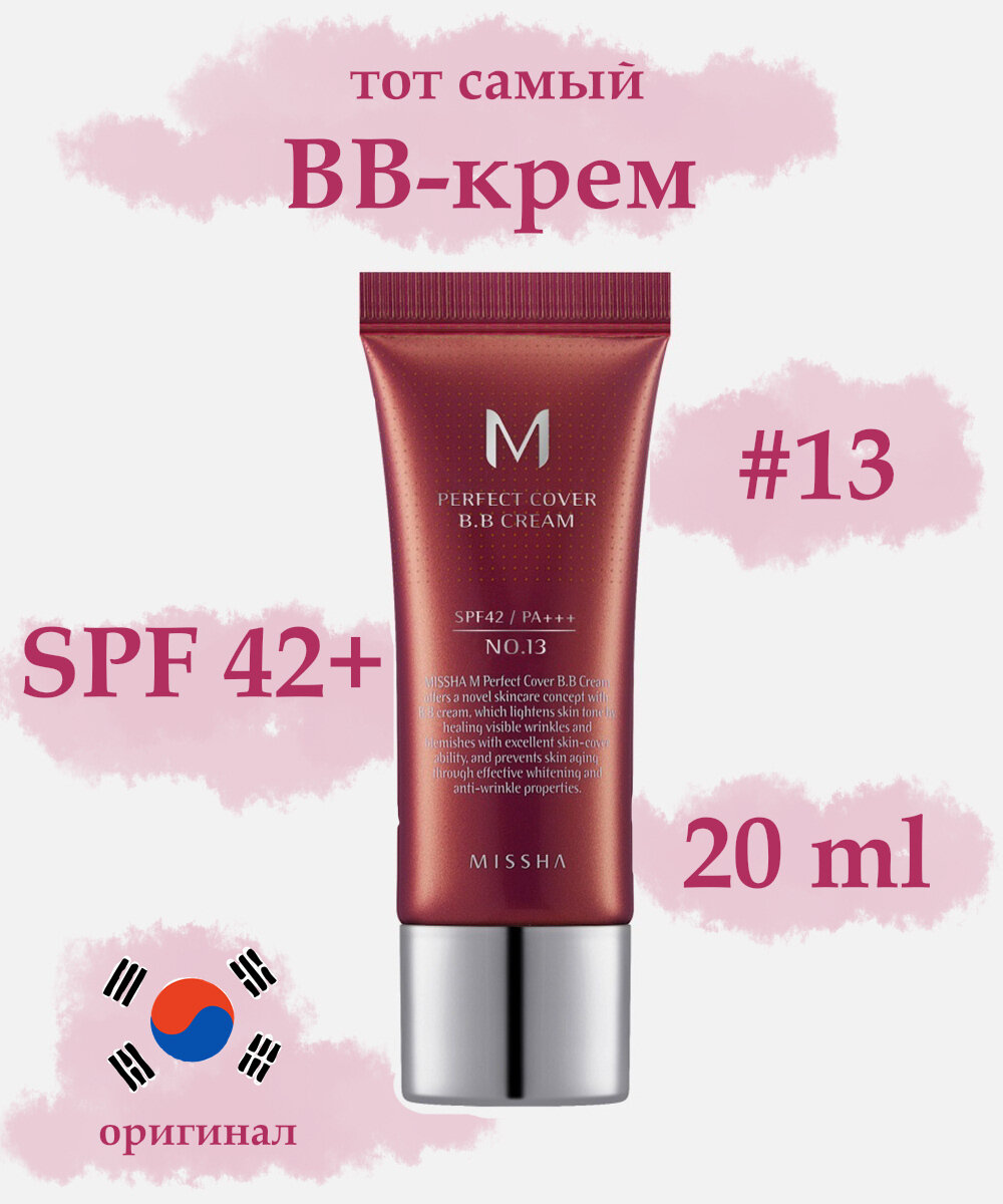 MISSHA тональный bb-крем для лица солнцезащитный #13 (20 мл.) M Perfect Cover BB Cream SPF42 PA+++ / Корейская косметика