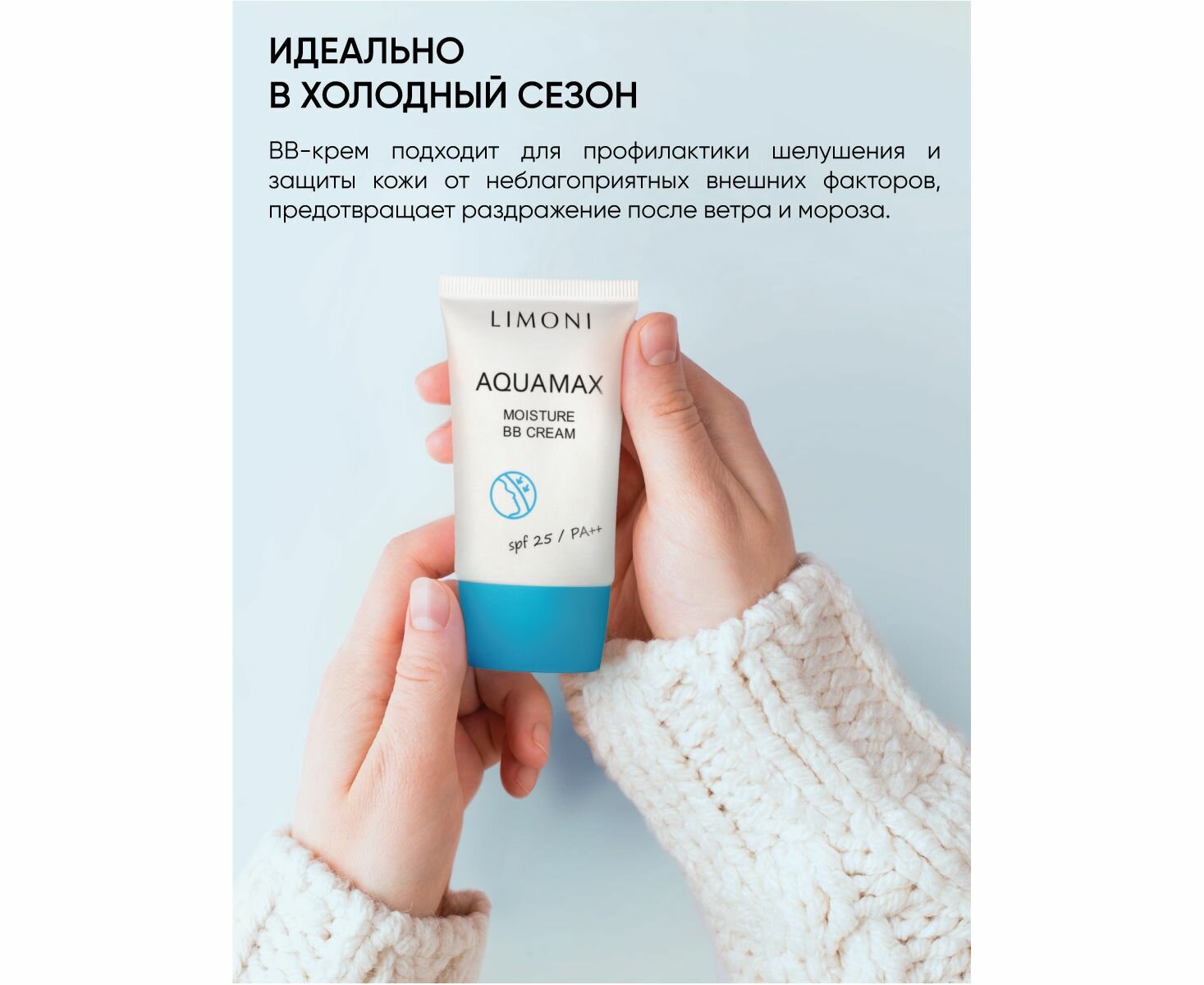LIMONI Тональный bb крем для лица Корея увлажняющий и выравнивающий тон кожи / AQUAMAX MOISTURE SPF 25 PA++ тон №1, 15 мл