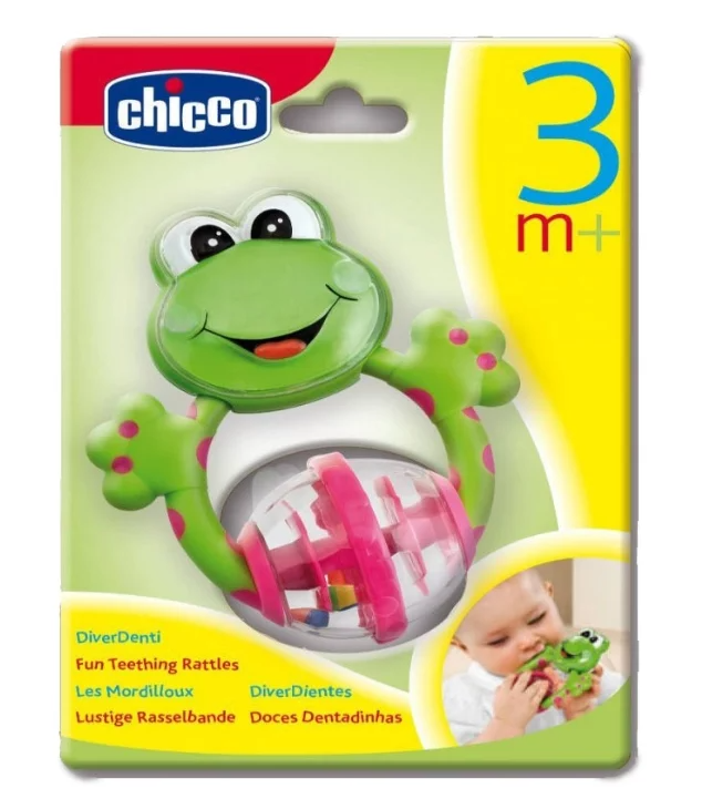 Прорезыватель-погремушка Chicco Лягушка 71697 зеленый/розовый интересное:
