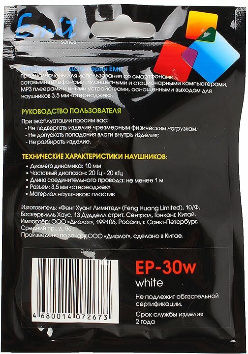 Наушники вкладыши Dialog EP-30, внутриканальные(затычки) - белые интересное: