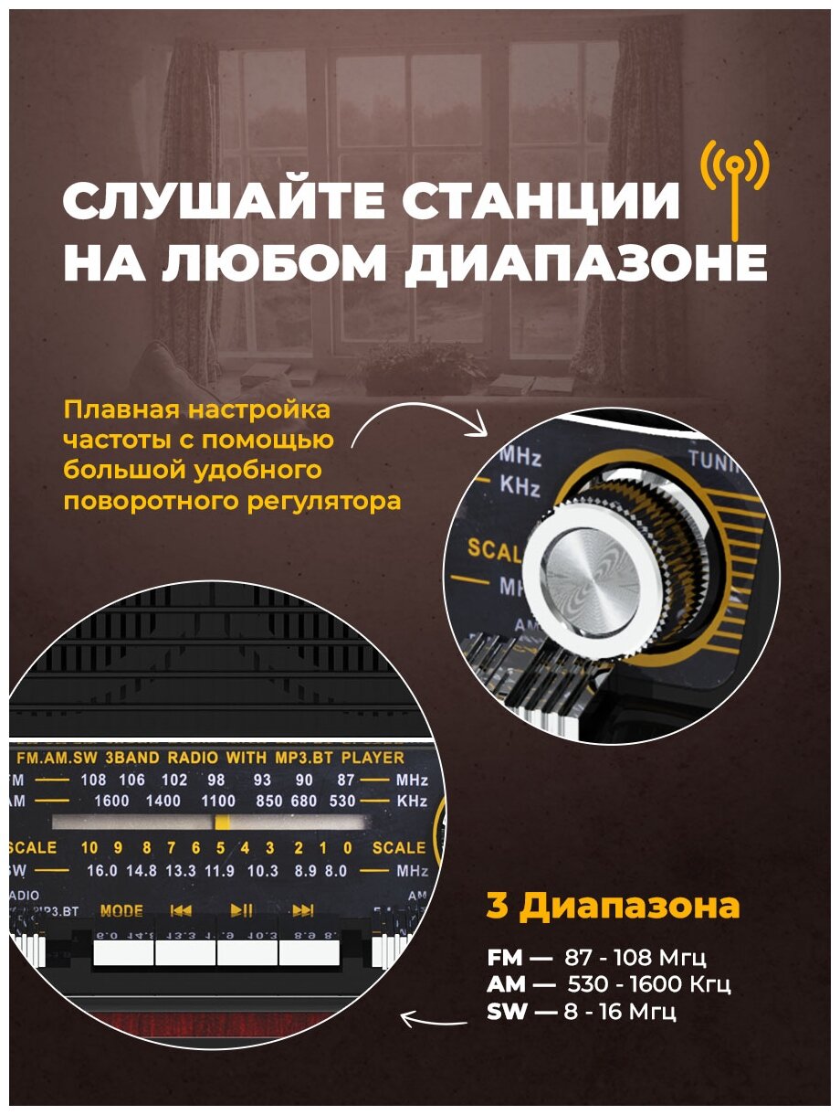 | Плюсы: | Прекрасный приемник выполненный в стиле ретро,с отличными функциями,диктофон,запись радио,чтение с флешки, шикарный диапазон станций- св,ам,фм,заряжается от сети в выключенном состоянии,очень рекомендую! |