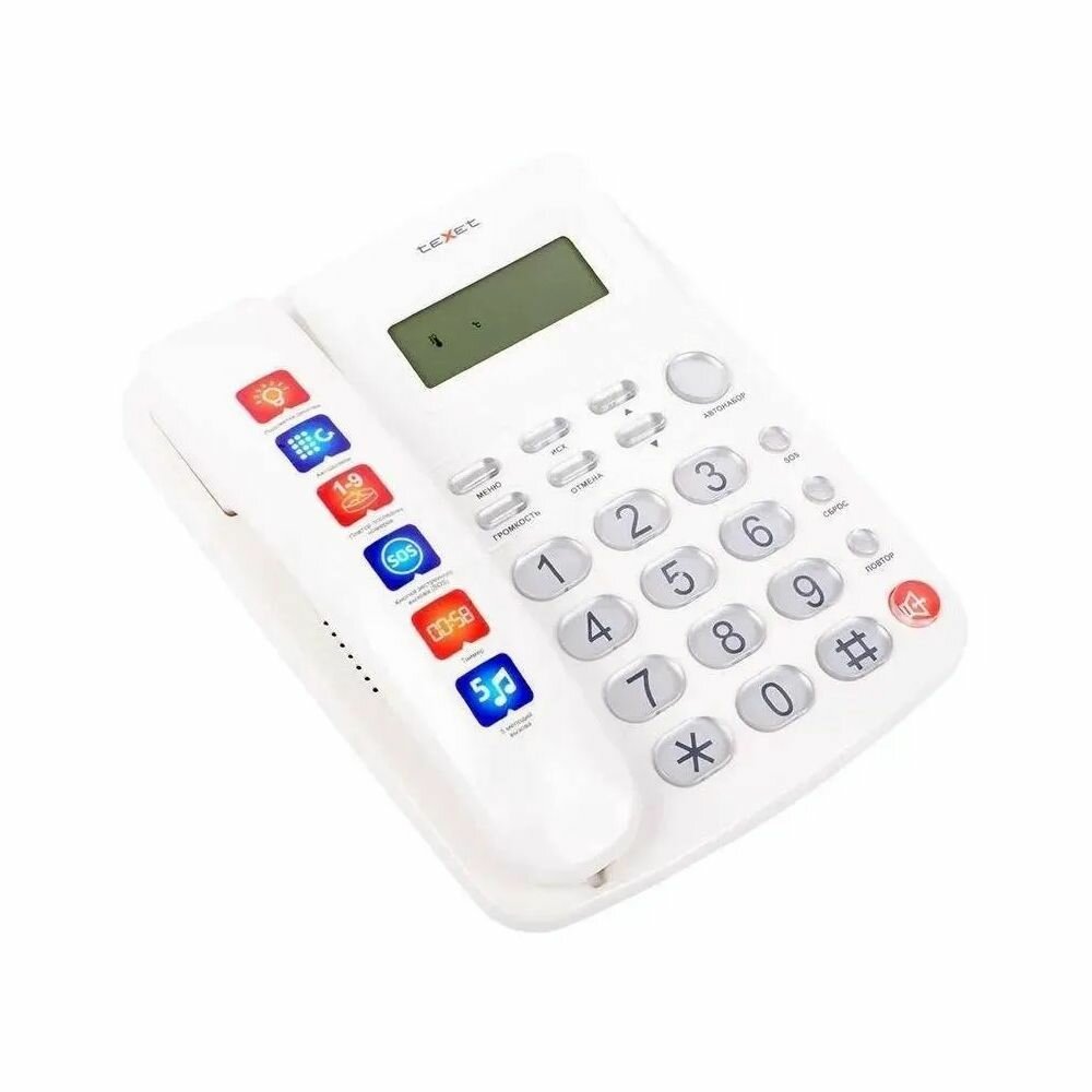 Телефон проводной Texet TX-250, ЖК дисплей, повторный набор, белый ( Артикул 344182 )
