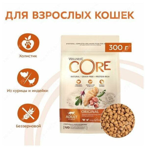 Wellness Core Adult Cat Original Grain free Turkey Chicken / Сухой Беззерновой корм Велнес Кор для взрослых кошек Индейка с Курицей 300 г