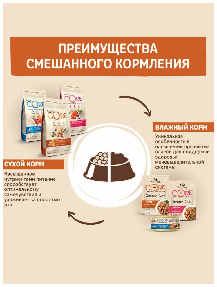 Корм для кошек сухой Веллнес Кор ORIGINAL для взрослых животных гранулы с индейкой и курицей 1.75кг / кошачья еда гипоаллергенная для ежедневного