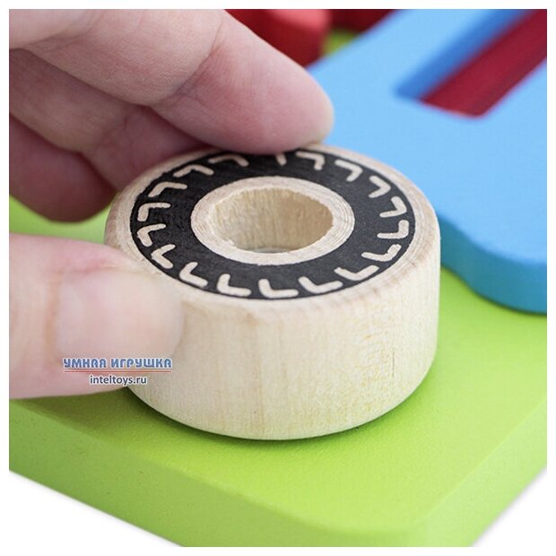 | Минусы: | Все детали кроме доски, штырьков и колёсика в верхнем правом углу (не во всех моделях, судя по фото) - это мдф. Дети быстро съели всю краску, а затем мдф размокает как картон, его можно наесться и подавиться.