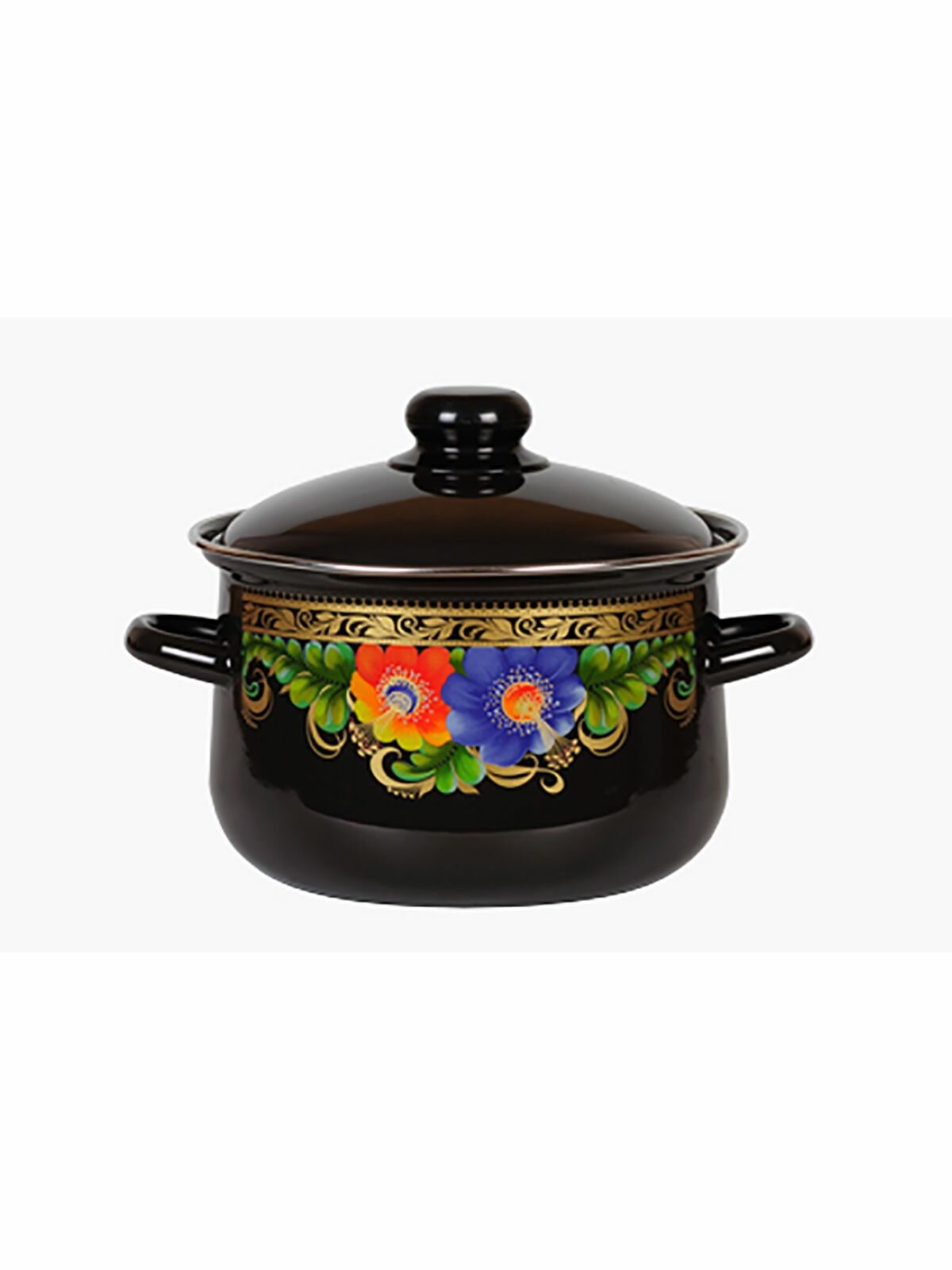 Кастрюля эмал.конич.5,5л черн.с красн.подп. Драгоценная 1с47я