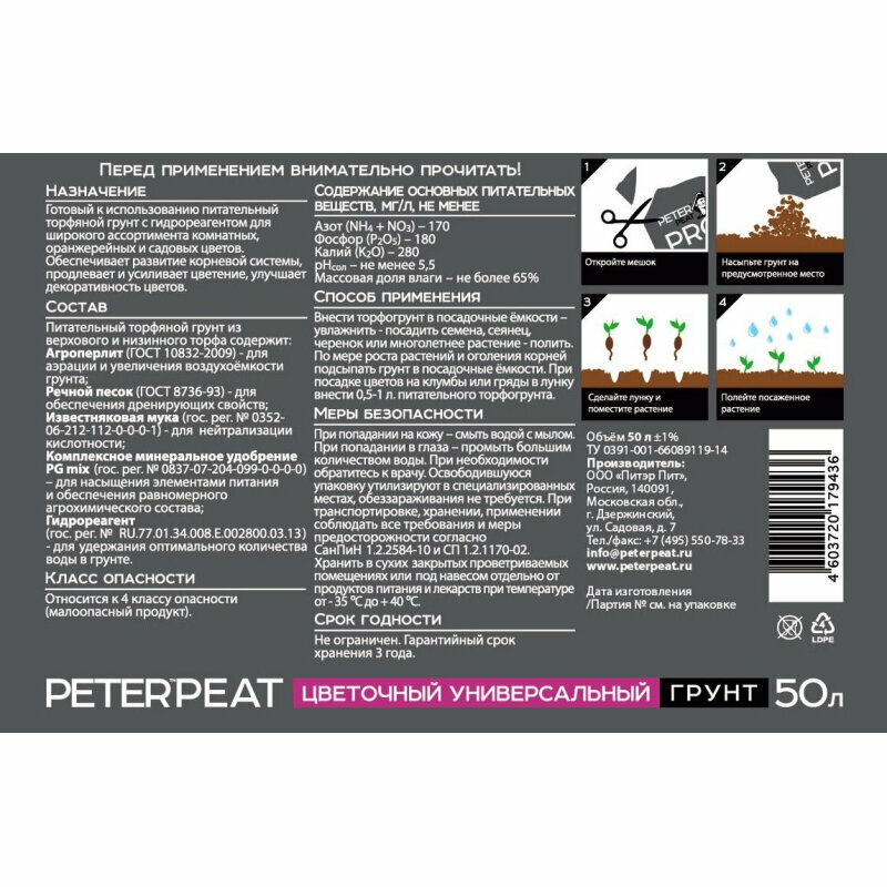 Грунт Peter Peat Цветочный Универсальный линия Про 50 л