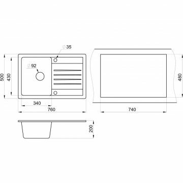 Кухонная мойка GRANULA ST-7602, кварц, 76см х 50см